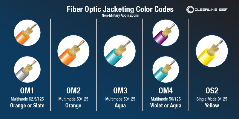 Jacket coloring is less helpful than the print legend, but if you are trying to simply determine whether you are looking at single mode or multimode fiber, it can be a good place to start.